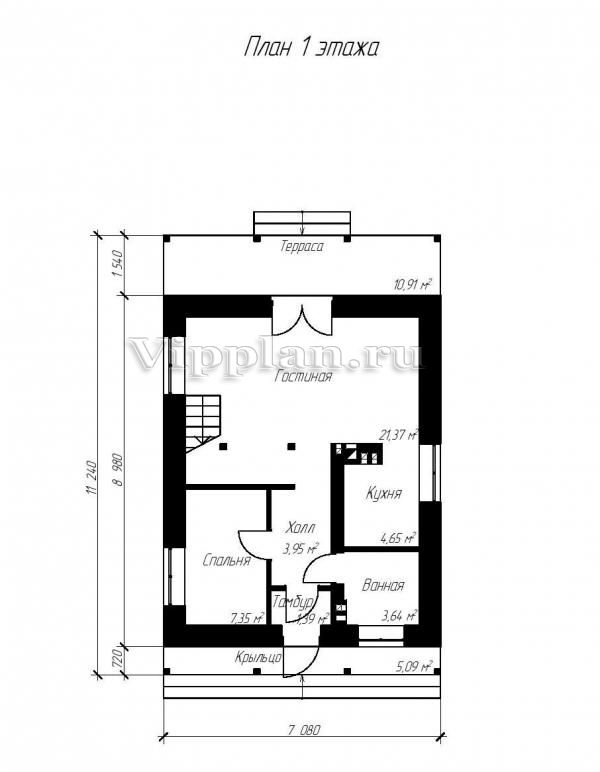 | Размеры дома: | 7.08м×11.24м |