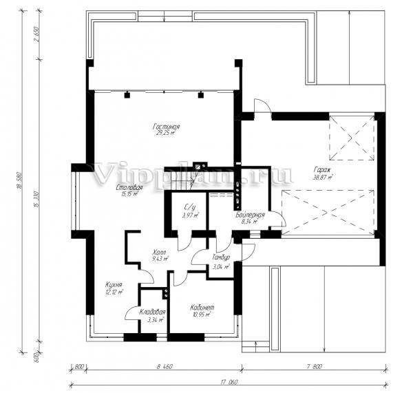 | Размеры дома: | 18.5м×17.06м |