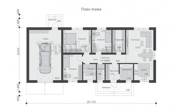 | Размеры дома: | 20.17м×8.67м |