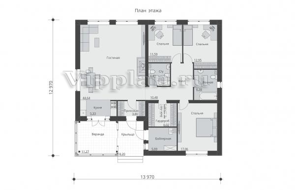 | Размеры дома: | 12.97м×13.97м |